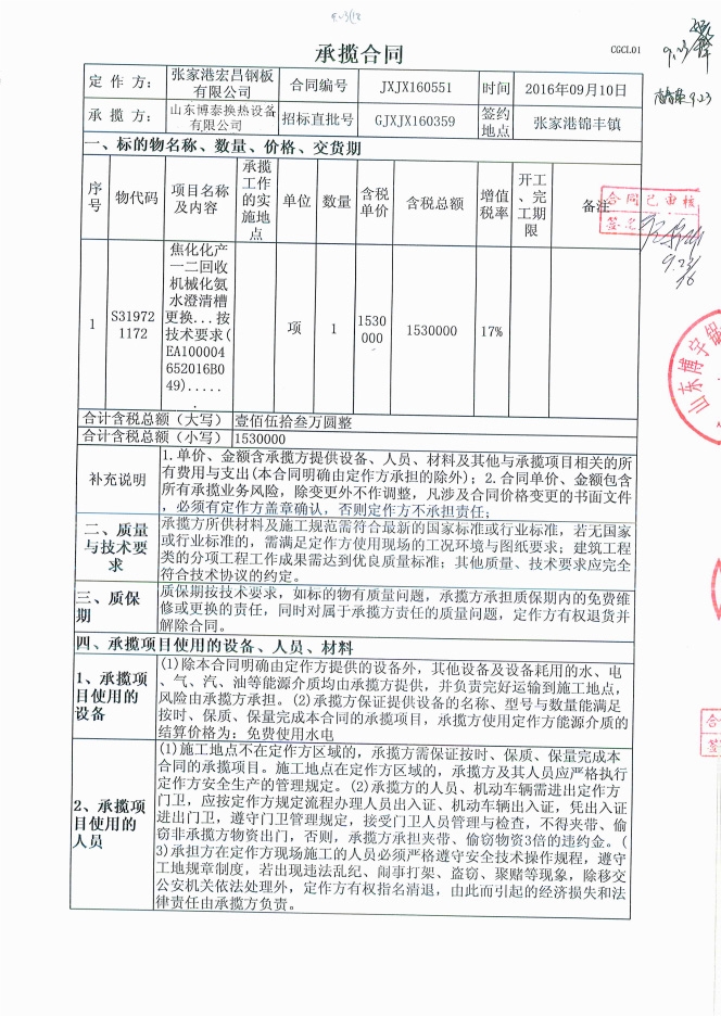 甲方:張家港宏昌鋼板有限公司(焦化廠化產(chǎn)車間,以下簡稱甲方)
